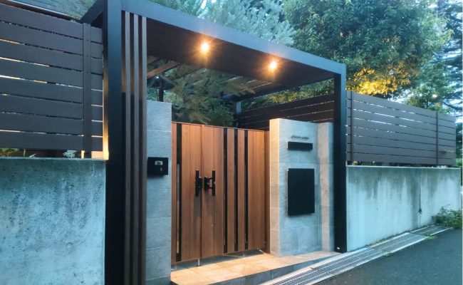 ウッドデッキ・タイルテラス、エクステリア(外構)リフォーム、ガーデンルーム・プ… 夜の帰宅が愉しみになる「光のゲート」