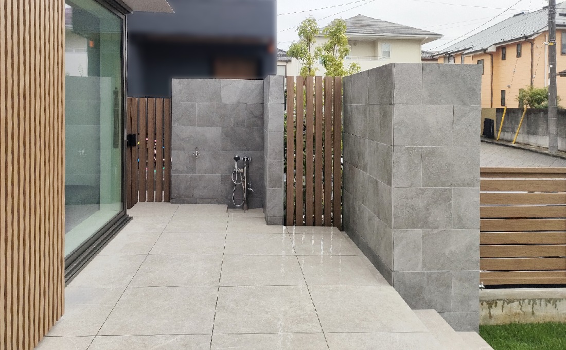 わんちゃん専用シャワー付きテラスのお庭