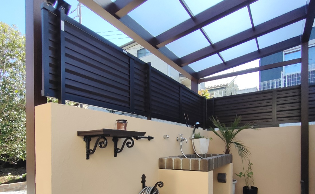 - タカショー Sポーチ 独立タイプ 1.5間×6尺切詰 ダークパイン色