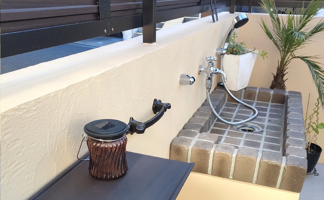 - Nikko ブリックトップ トランスブラウン、Nikko 二口蛇口 H305 クロームメッキ+Nikko シャワー蛇口