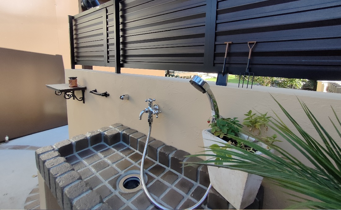 敷地の一角には、畑の道具や採れたお野菜を洗ったりできる屋根付きの小屋を造りました。