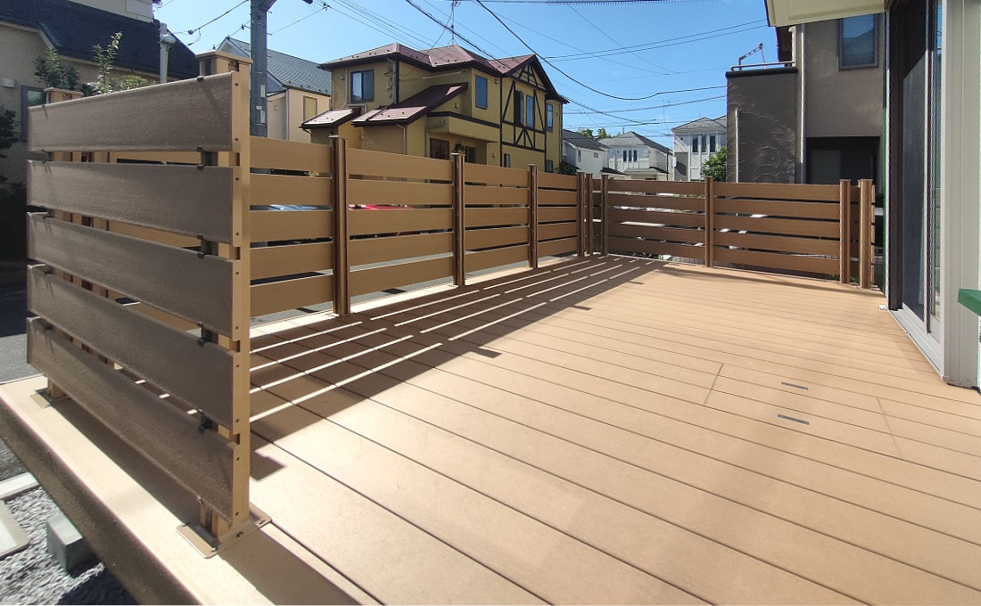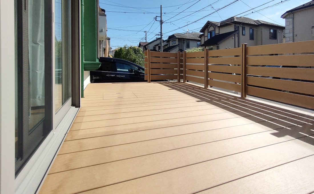 LIXIL樹ら楽ステージウッドデッキ ライトウッド色の施工事例です