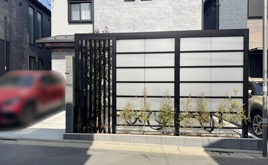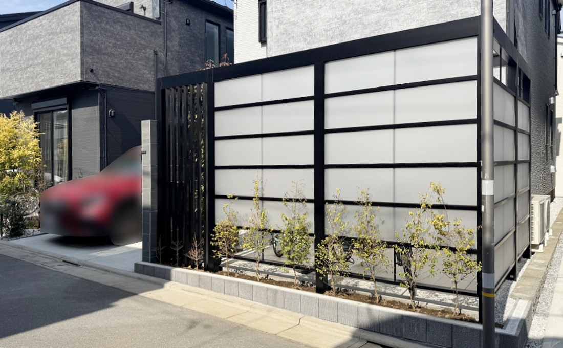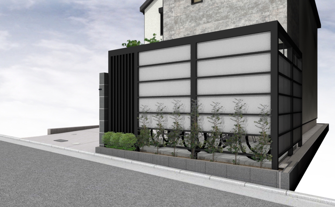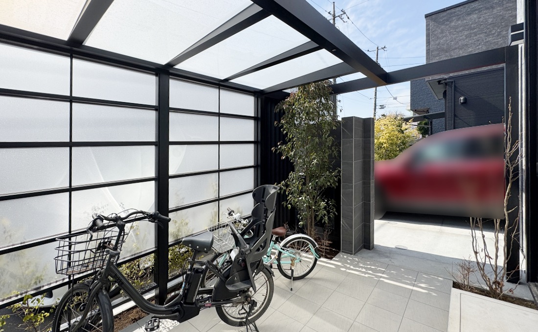 お庭の目隠しと自転車置き場を兼ねたプラスG活用