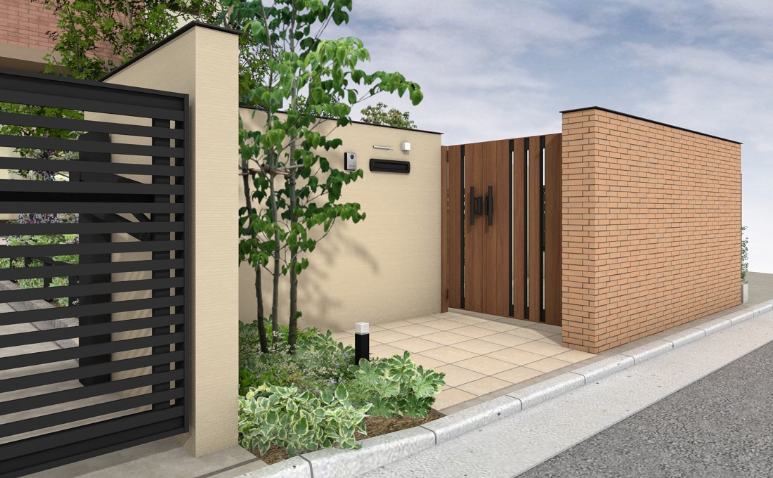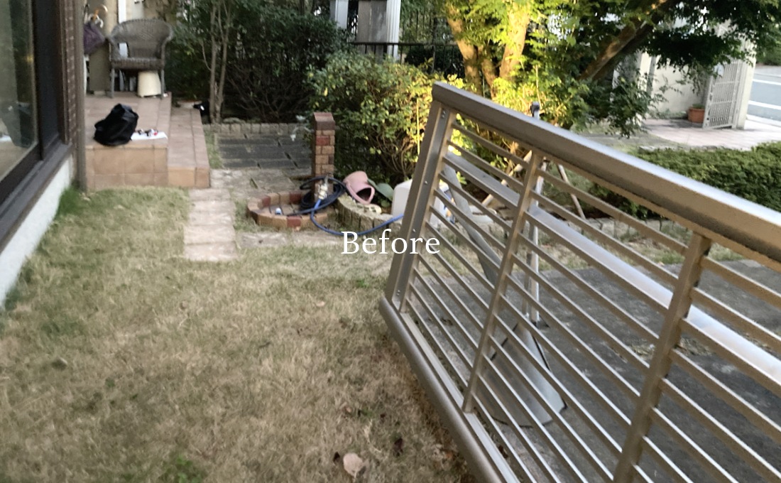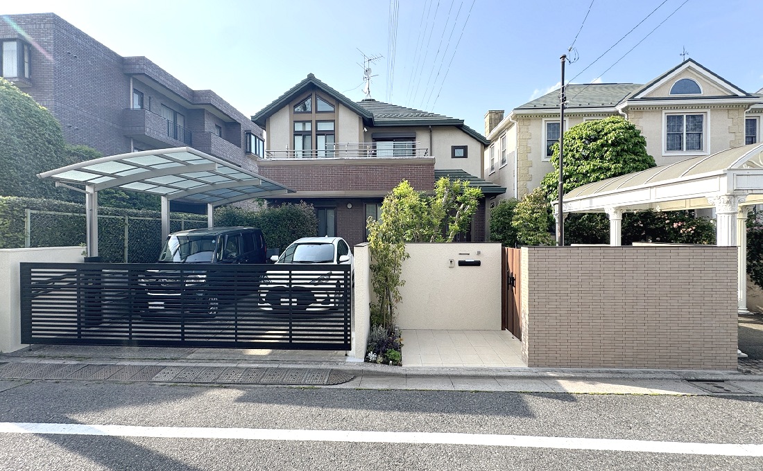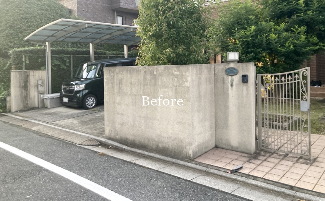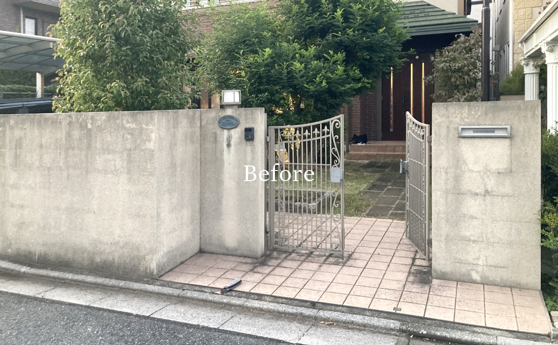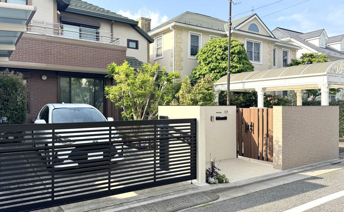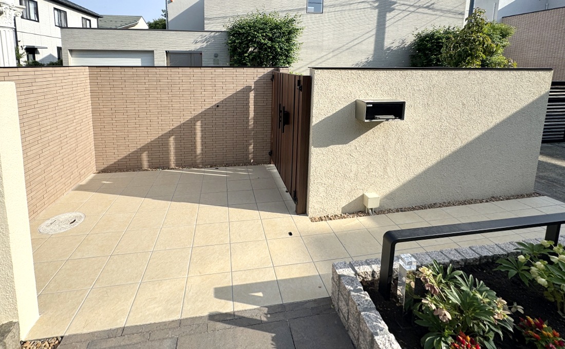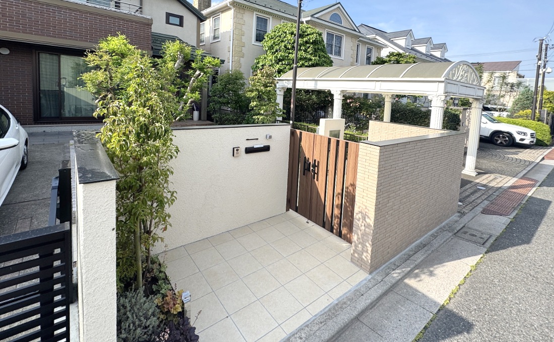 以前の門扉も素敵でしたが、せっかくリフォームするならと直角に入るご提案によってゆとりのある門周りを演出しました。