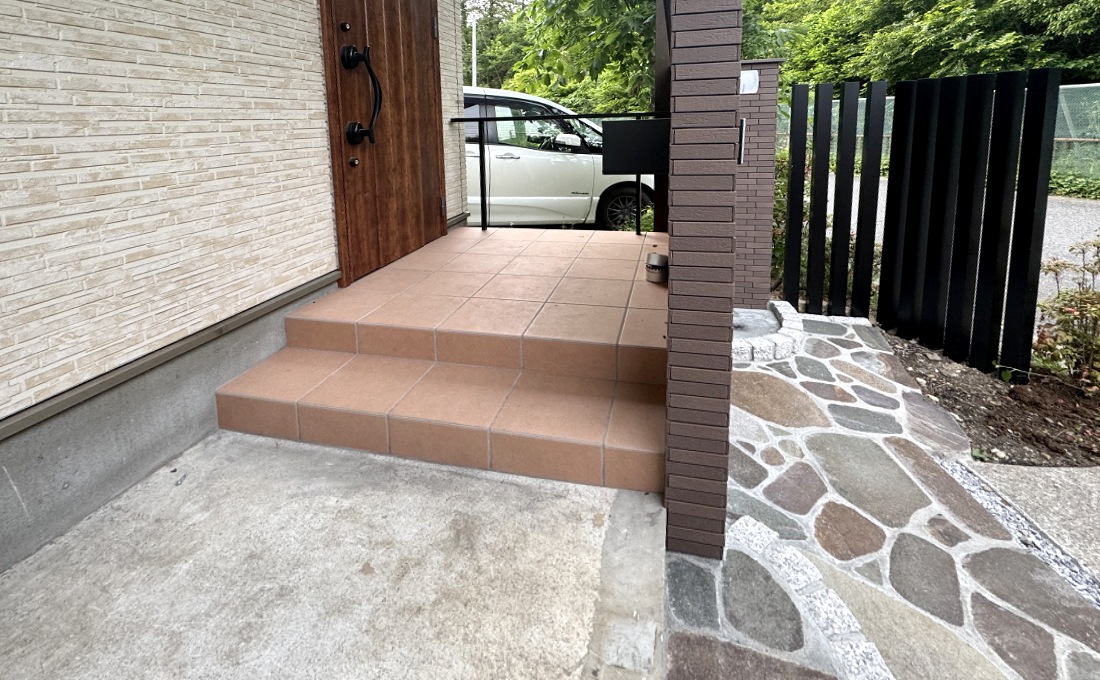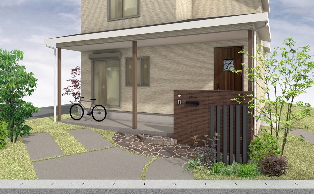 自転車も軒下に入れやすくなり、使い勝手のよい玄関まわりとなりました。