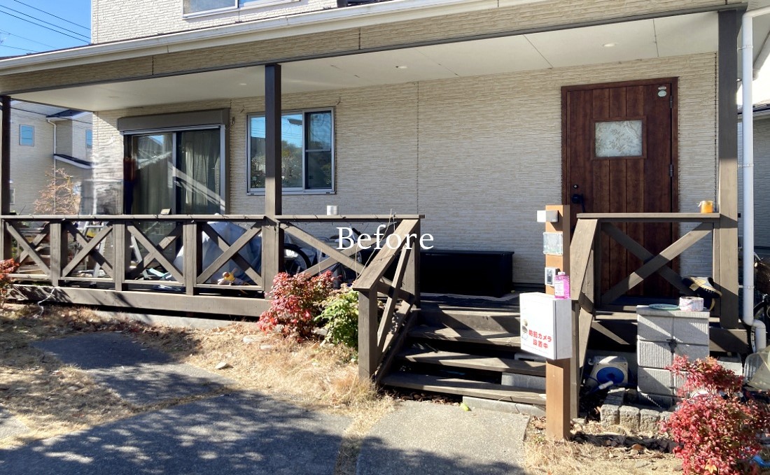 木製のウッドデッキポーチが古くなってきたためご相談をいただきました。